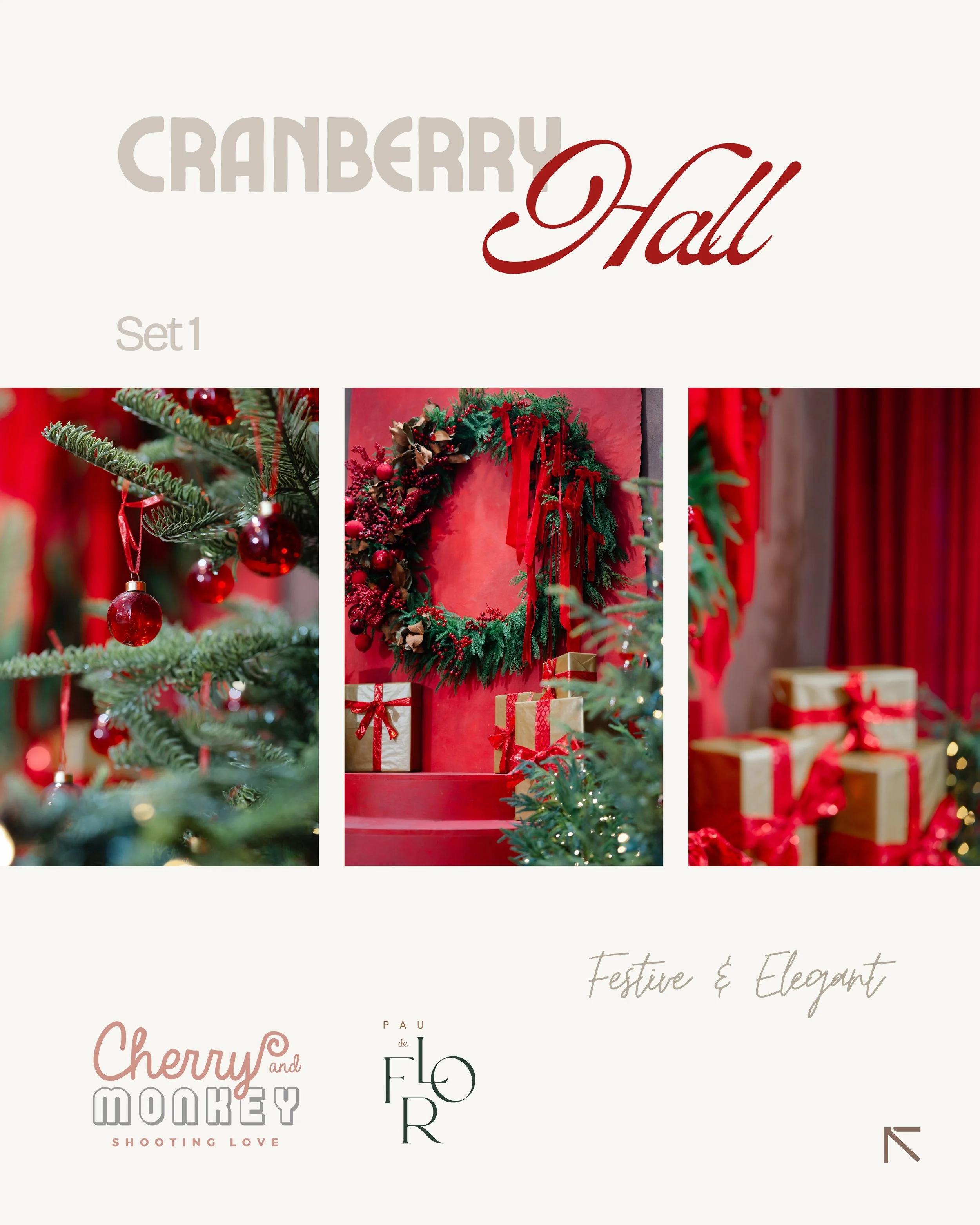 🌲 Cranberry Hall – Una corona navideña gigante rodeada de pinos con una asombrosa escalinata. El marco perfecto para retratar a toda la familia entre luces y regalos.